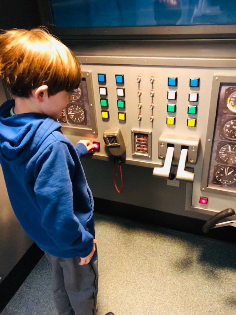 This project started from the idea of the airplane cockpit exhibit we loved when we visited the Children’s Museum of New Hampshire. Tristan showed immediate interest in the cockpit set up and frequently returned to the exhibit to explore it. One of the best ways you can see what your child gravitates to sensory wise is through museums and then see if you can make it yourself!