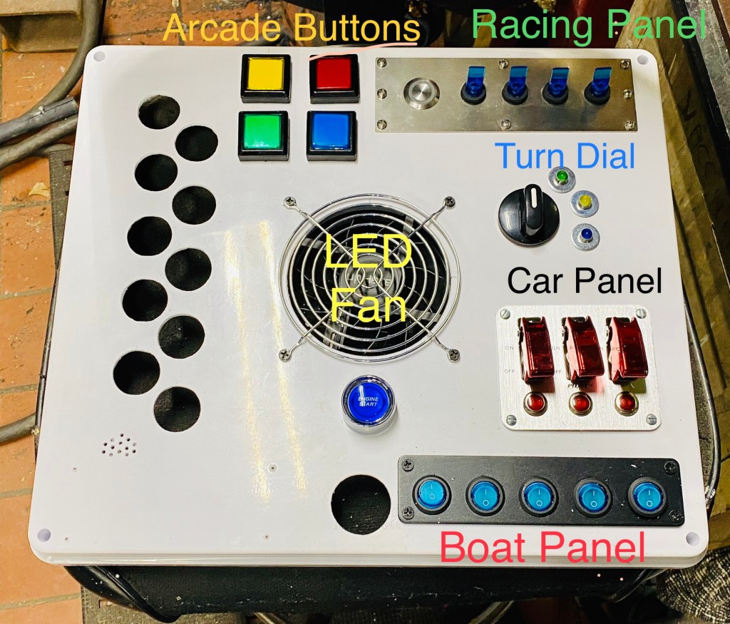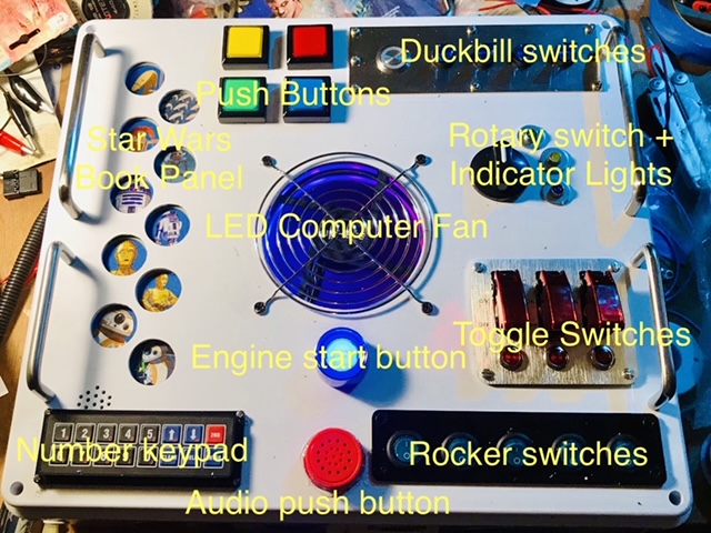 Each switch that has an indicator light also has an output to go to something in the real world, but for this project we just decided that the toggles only operate the lights.