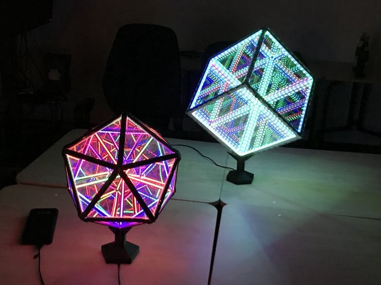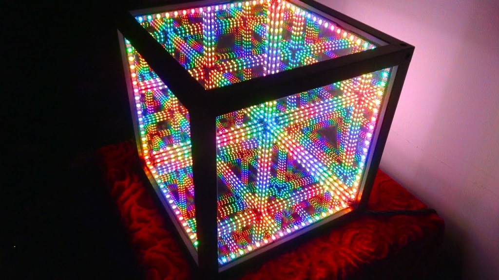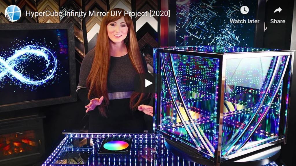 For the other infinity cube, you can design the LED strips in many directions (whatever design you feel looks best). Karl decided to go in a square outline shape with his and have them folded over on themselves basically so he wouldn’t have to solder unless he wanted to. Then you can trim the extra. However depending on the thickness of your LED strip, you might need to hot glue it into place. Another option would be to cut and solder each LED strip section you cut to make it very neat and catch more reflections. Just be sure to peel back the sticky part of the LED strip to then solder the wires together (and as always black goes to black and red goes to red). Honestly whatever design you choose will look amazing!