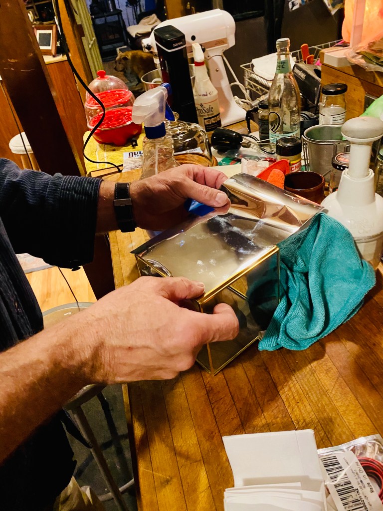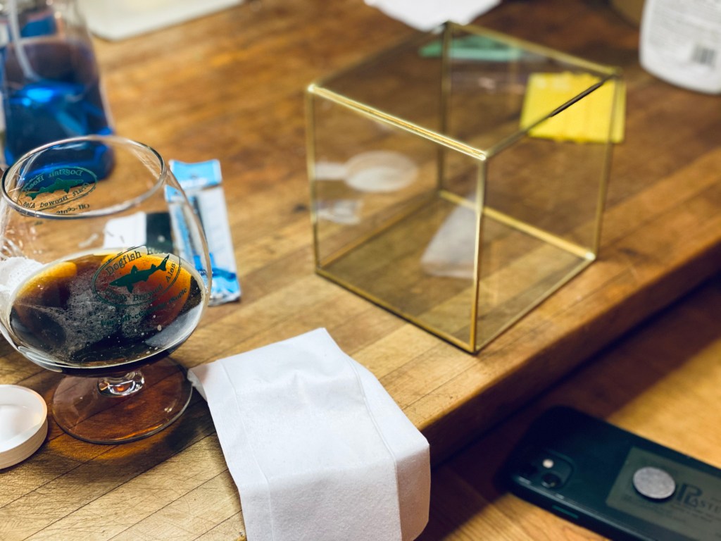 After cleaning the cube, be sure to spray A TON of window film application solution (SERIOUSLY – DO NOT BE SHY ABOUT HOW MUCH). This helps getting the mirrored film in the correct location without it sticking to the cube just yet. You can dab the extra liquid off with a tissue. It will dry on its own but be careful not to move it too much in the process. By the end of this process, it will look like a mirrored cube that is missing one side basically.